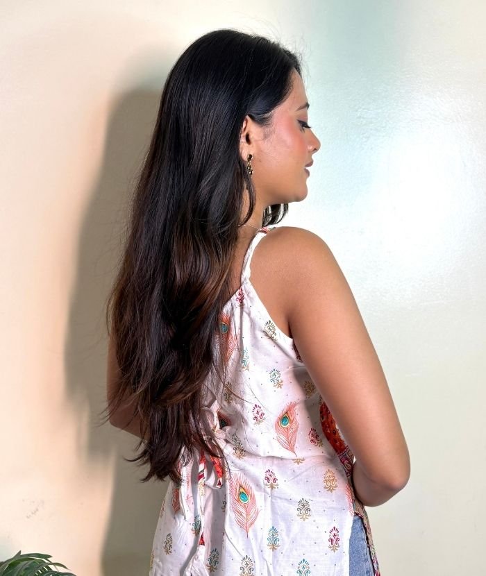 Gopika Mrug Sleeveless Kurti features a clean silhouette with a comfortable fit & 100% pure cotton fabric—perfect for college, office and everyday wear.